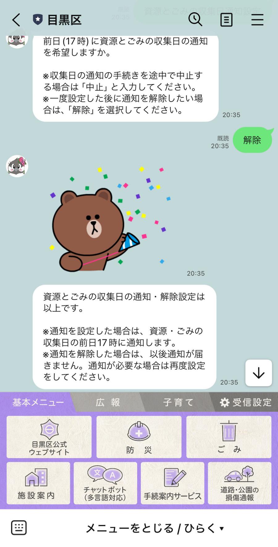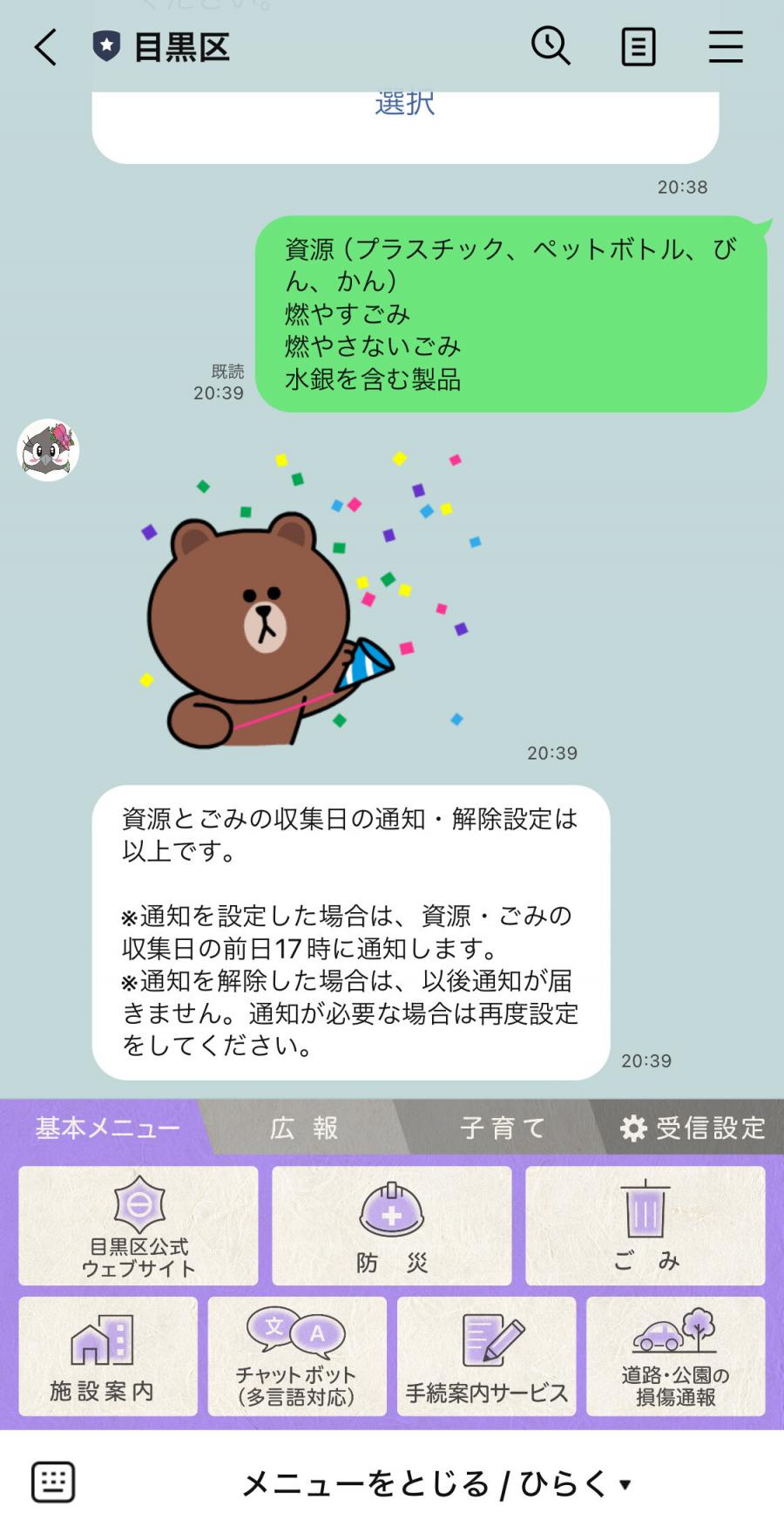ご利用になる前に、「目黒区LINE公式アカウント」のページから本アカウントの運用ポリシーをご確認ください。