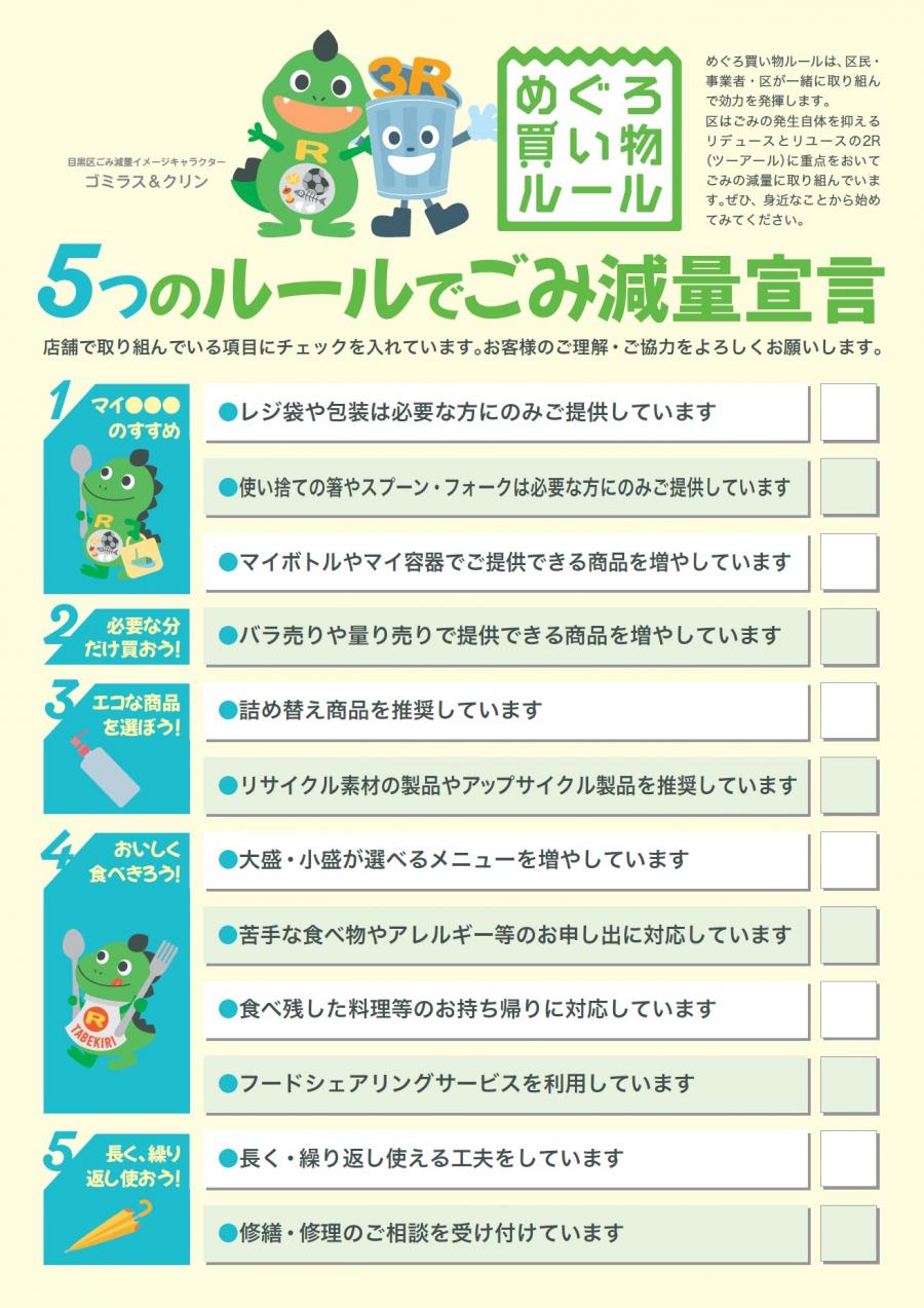 「めぐろ買い物ルール」は賢い買い物を区内に広めるルールです。