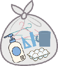 - プラスチック製容器包装(プラマークが目印)と同じ袋(中身の見える袋)に入れて、集積所に出す。