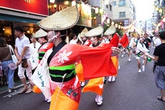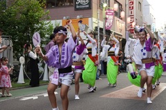 区外からも多くの団体が参加し、商店街を踊りながら練り歩きます。