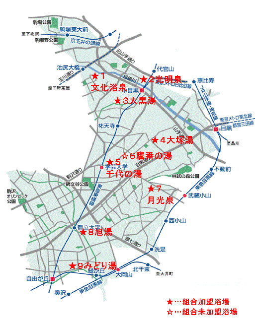 - 支部実施の各種無料入浴サービス、めぐろリフレッシュ湯及びようこそ銭湯ランナーはご利用いただけません。