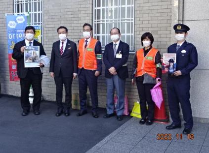 警視庁の特殊詐欺被害防止強化月間の取り組みの一環として、令和4年11月16日(水曜日)午前に目黒区、目黒警察署及び碑文谷警察署と合同で被害防止啓発キャンペーンを区役所敷地内で行いました。