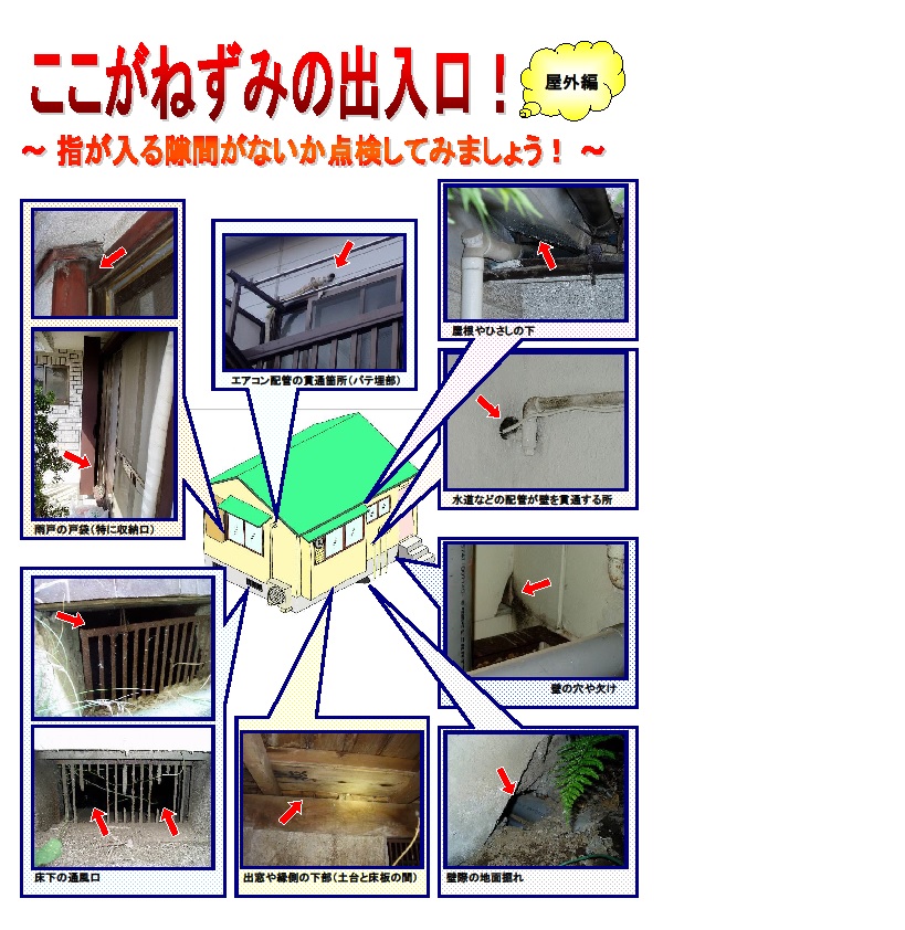 以下は、保健所が相談者のお宅で調べた、侵入口になりうる箇所の代表例です。