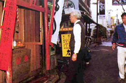 東横線自由が丘駅前ロータリーから、時計店と茶舗の間の細い路地を入ると、左手に小さなお稲荷さんがまつられている。