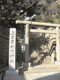 玉川通りの前身は、江戸と相模国厚木とを結ぶ「厚木街道」。この道を、相模川でとれた鮎を魚河岸へ急送する「鮎かつぎ」が往き来し、また、氷川神社の石段下の道標にその名が残るように、相模大山の阿夫利(雨降)神社への参詣路、「大山道」としても利用された。