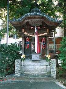 木造の立派なお堂で、かわらの上に可愛らしい猿の像が乗っています。庚申塔は3基で、近くにさわらの木があったことからこの名が付きました。
