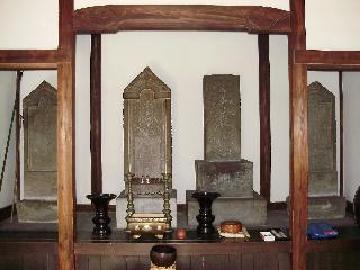 帝釈天(たいしゃくてん)堂内に板碑(いたび)型の庚申塔(こうしんとう)が3基、柱型の庚申塔(こうしんとう)が1基納められています。