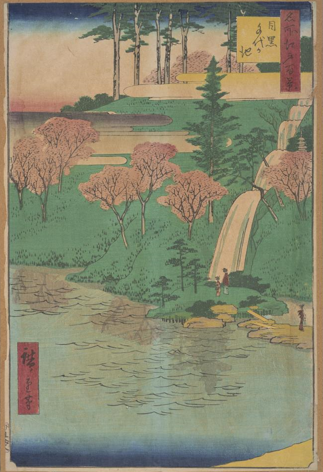 このほか、爺ケ茶屋(じじがぢゃや)、千代が池なども目黒の名所として美しく描かれている。