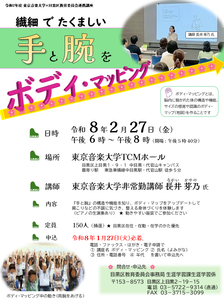 東京音楽大学×目黒区教育委員会連携講座ー繊細でたくましい「手と腕」をボディ・マッピング