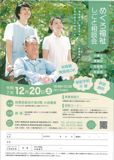 めぐろ福祉しごと相談会にお越しください