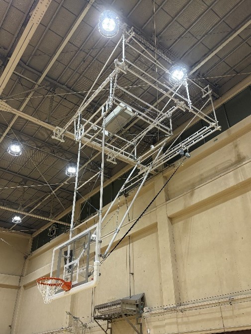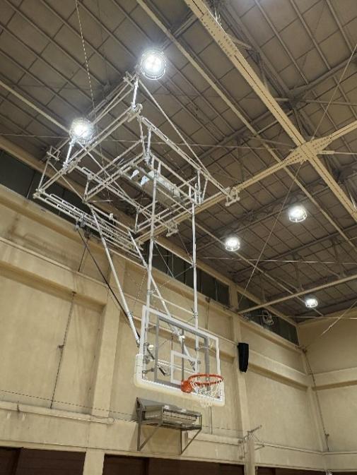 令和6年度にスポーツ振興くじ助成を受け、碑文谷体育館のバスケットゴールを整備しました。