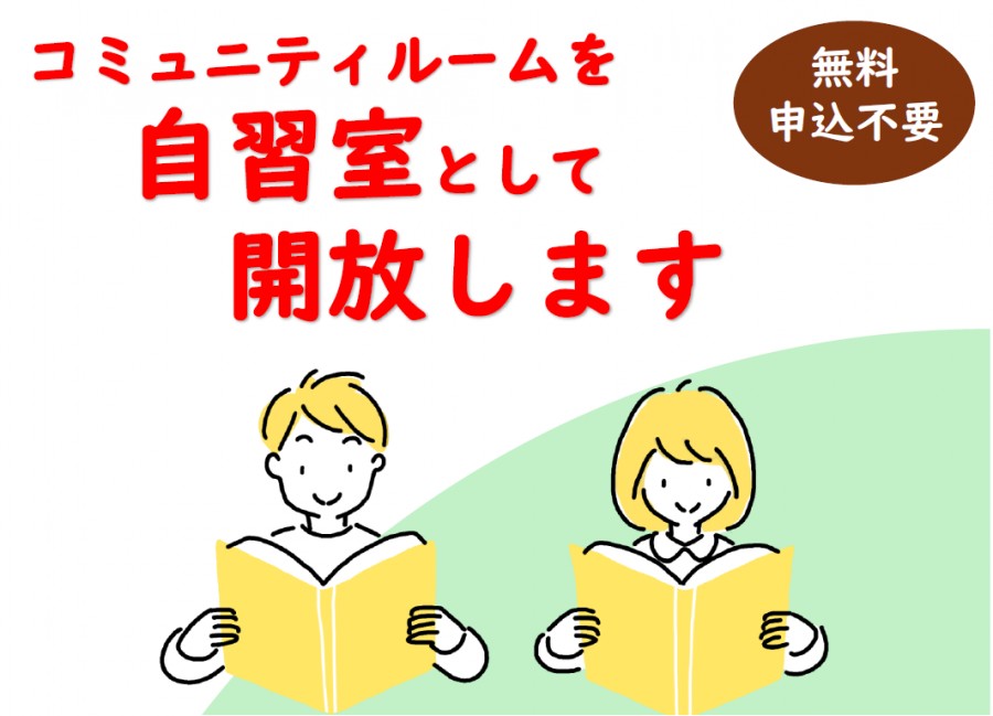 コミュニティルームを自習室として開放します